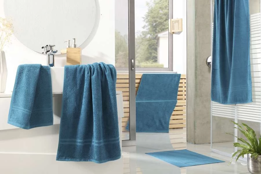 10x Handtuch mit Aufhänger 50×100 cm Petrol 100% Baumwolle Walkfrottiertuch