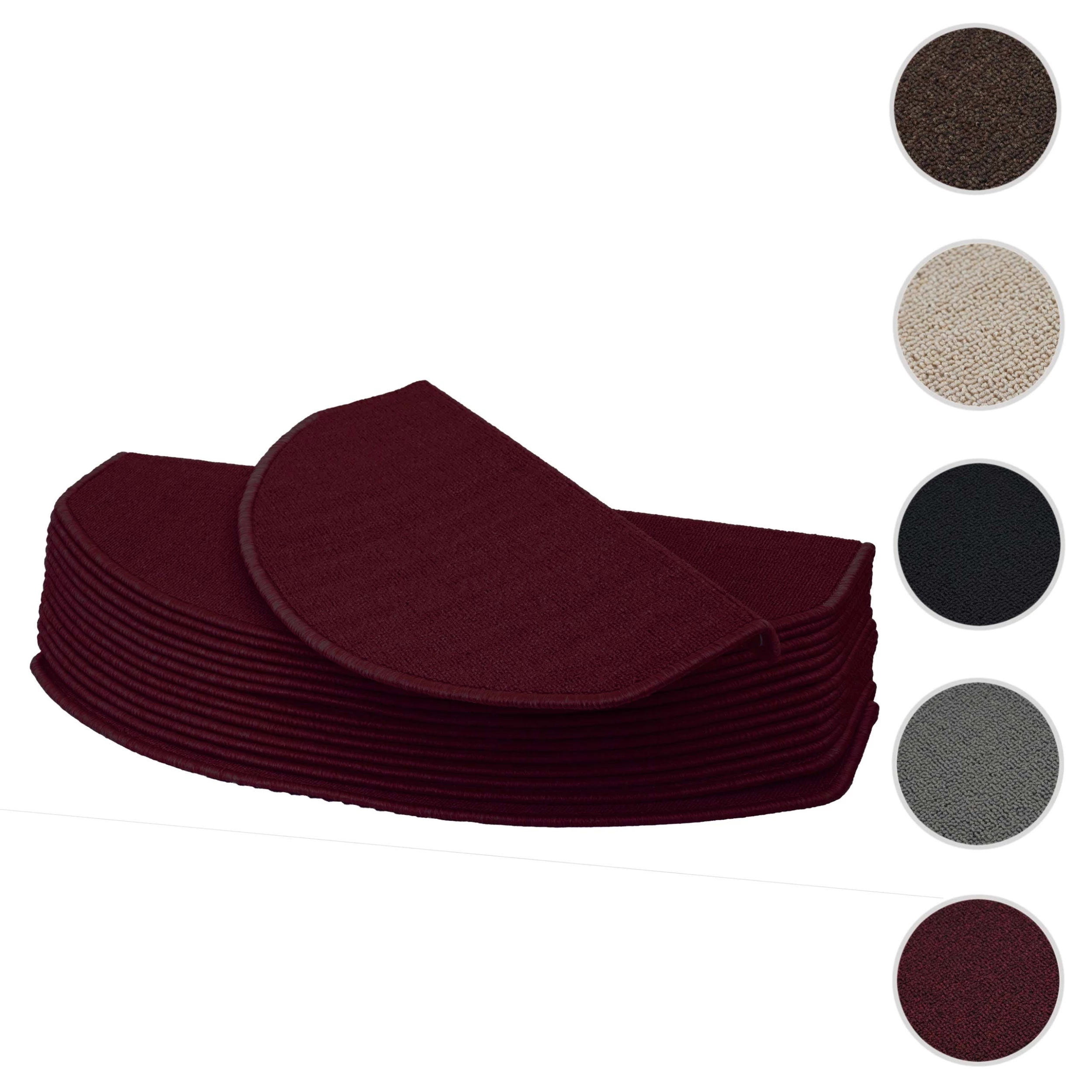 Null 15er-Set Stufenmatte HWC-G49, Treppenteppich Treppenschutz Treppenmattenset, 65x25cm ~ Halbrund, Bordeaux