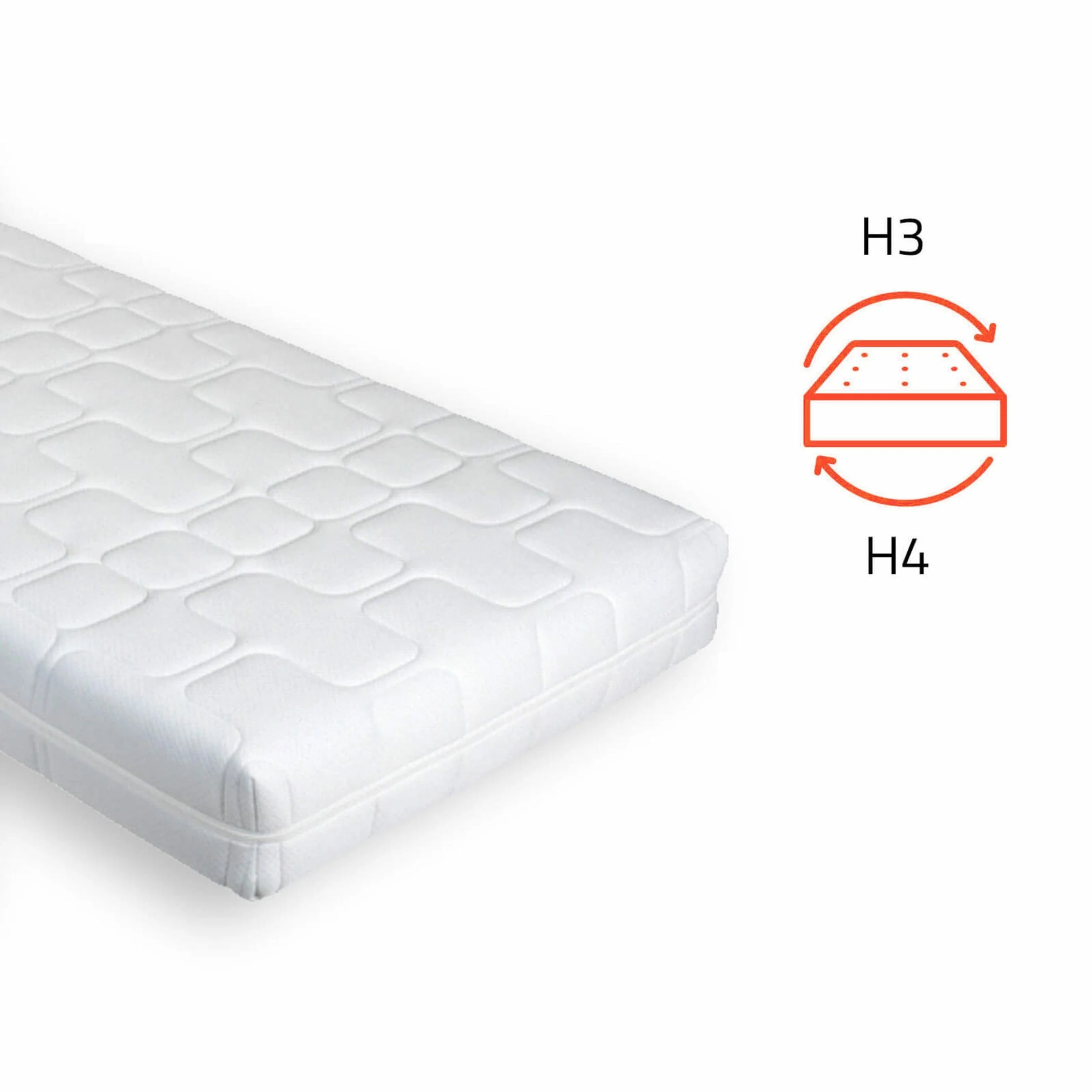 Durch wenden der Matratze haben Sie die Möglichkeit den Härtegrad anzupassen, der hier zwischen H3 weich/mittelfest und H4 mittelfest/hart variiert.