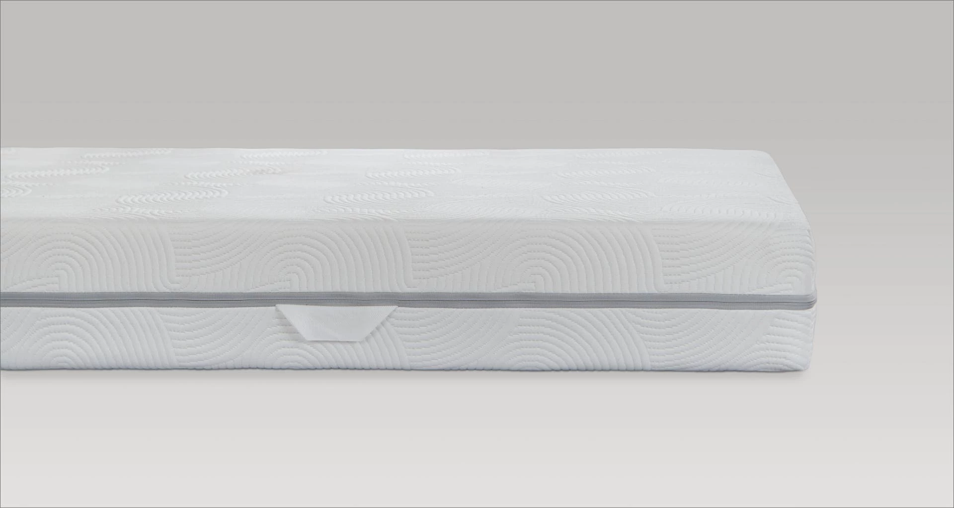 Eine Mischung aus Superschäumen mit offenzelligen Strukturen gewährt einen hohen Halt mit ausgezeichneter Druckentlastung auf beiden Seiten. Ebenso ist die Matratze auf beiden Seiten in 7 Zonen konturiert, was die Haltung während des Ausruhens fördert.