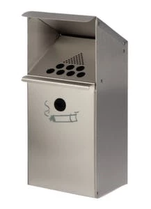 Edelstahl-Wandascher, Höhe x Breite x Tiefe 320 x 240 x 100 mm, aus Edelstahl, Aschereinsatz Inhalt 3 l, mit Schutzdach, verschließbar mit Dreikantschloss, einfache Entleerung über innenliegenden Handgriff, Lieferung inklusive Montagematerial.
