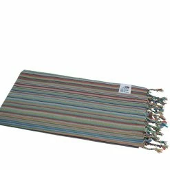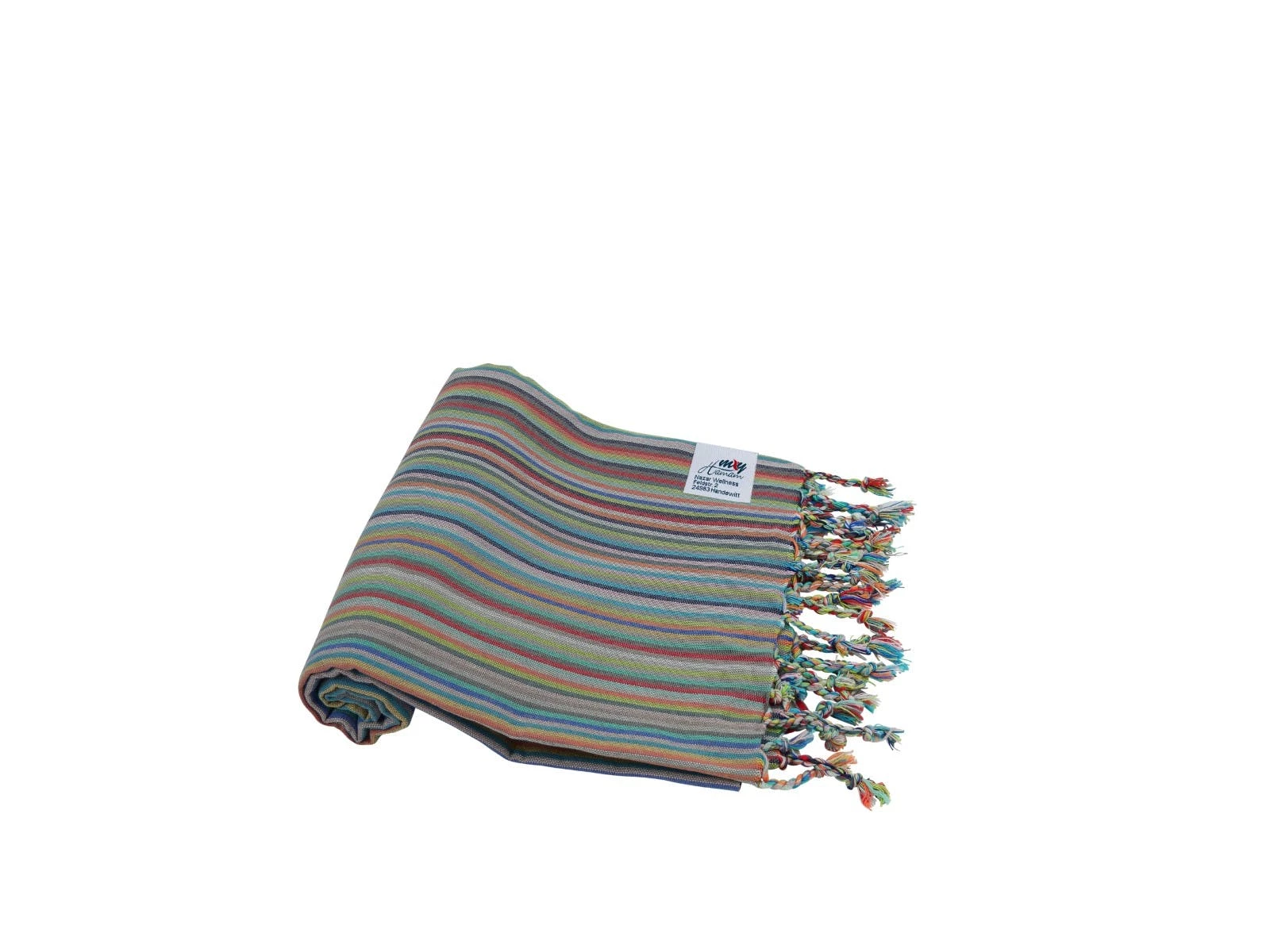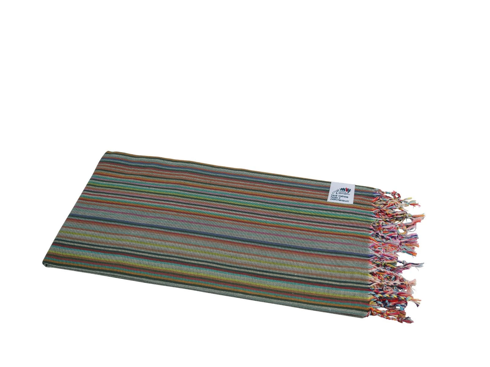 Hamamtuch Evliya Style mit bunten farbigen Streifen und handgeknoteten Fransen