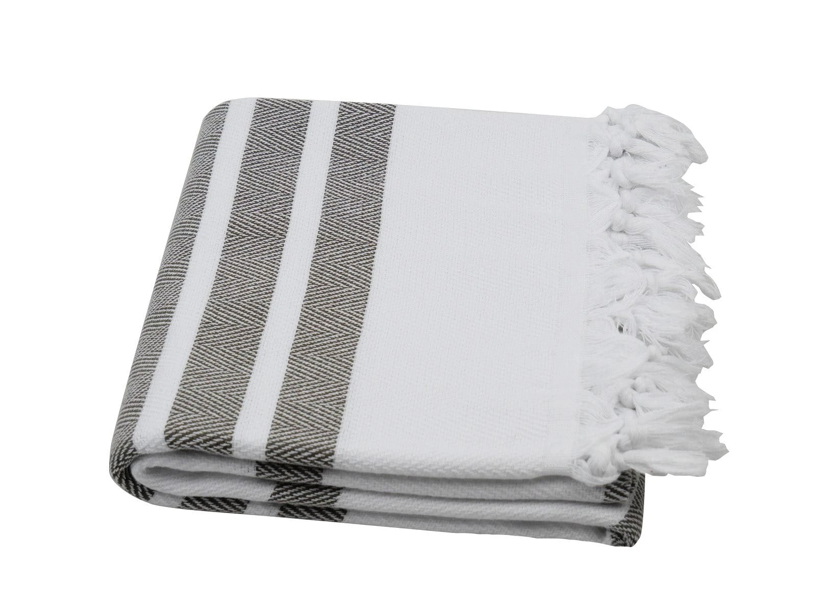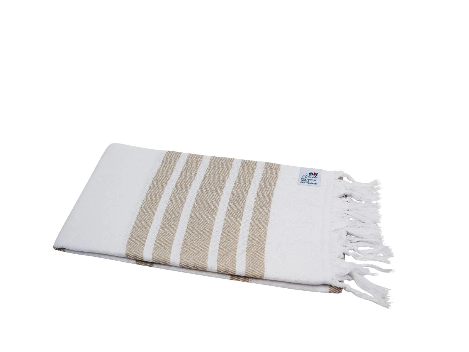 Das Fisch Style Hamamtuch hat im Hauptteil farbige Streifen. Am Rand sind die Streifen dichter