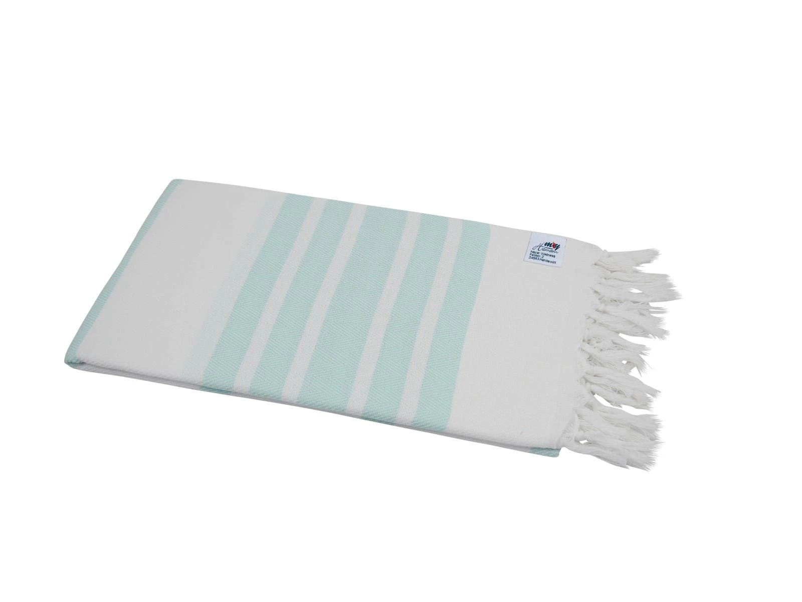 Das Fisch Style Hamamtuch hat im Hauptteil farbige Streifen. Am Rand sind die Streifen dichter