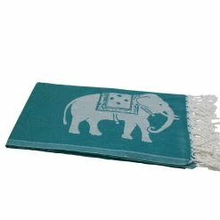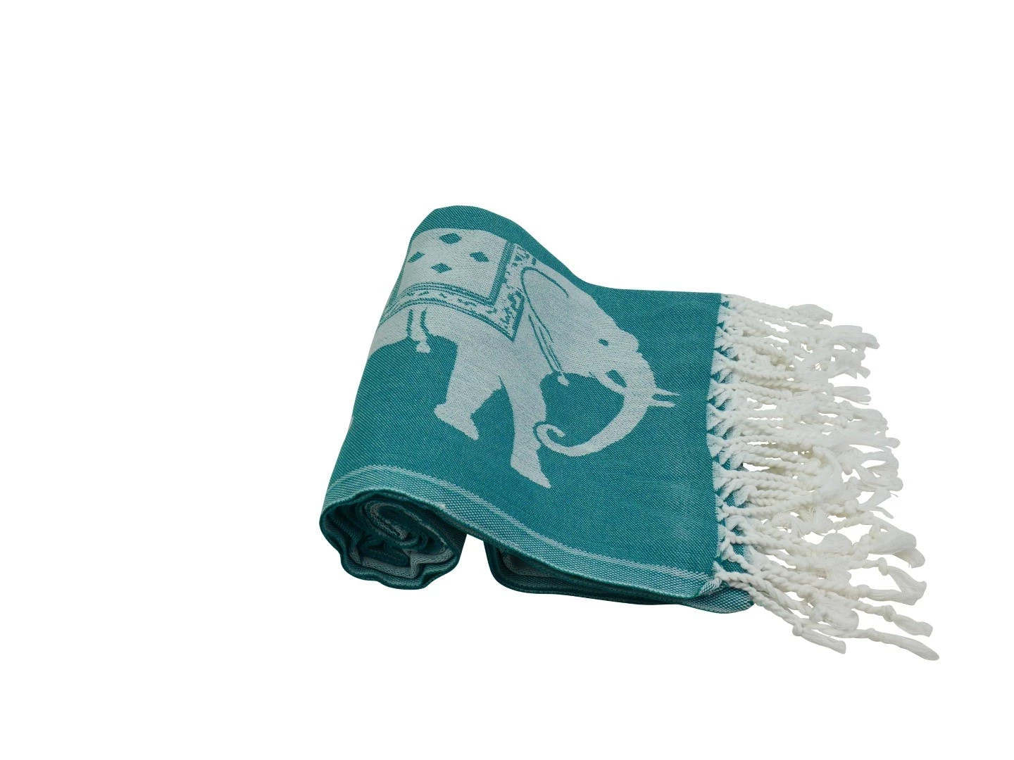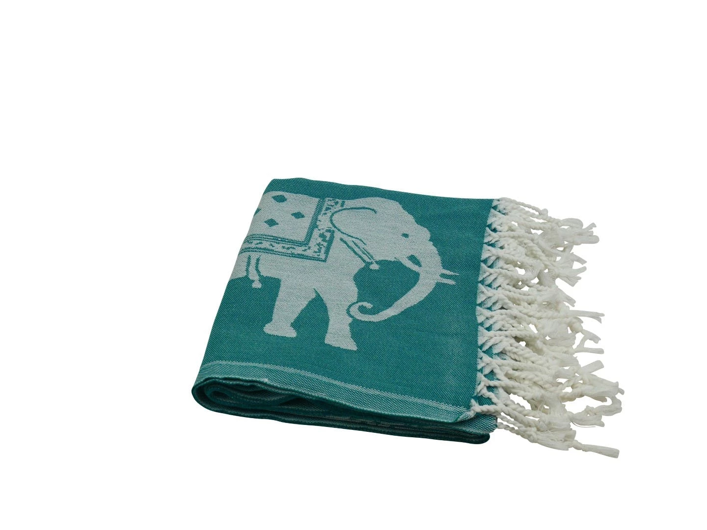 Ein Badetuch im Hamam Stil ist ein flach gewebter Baumwollstoff, der hauptsächlich als traditionelle Badebekleidung in türkischen Hamams verwendet wird. Es ist vielleicht nicht so dick gewebt wie Frottee, aber diese Hamamtücher sind leicht, schnell trocknend, saugstark und extrem vielseitig. Auf dem Hamamtuch befinden sich 11 Elefanten Motive.