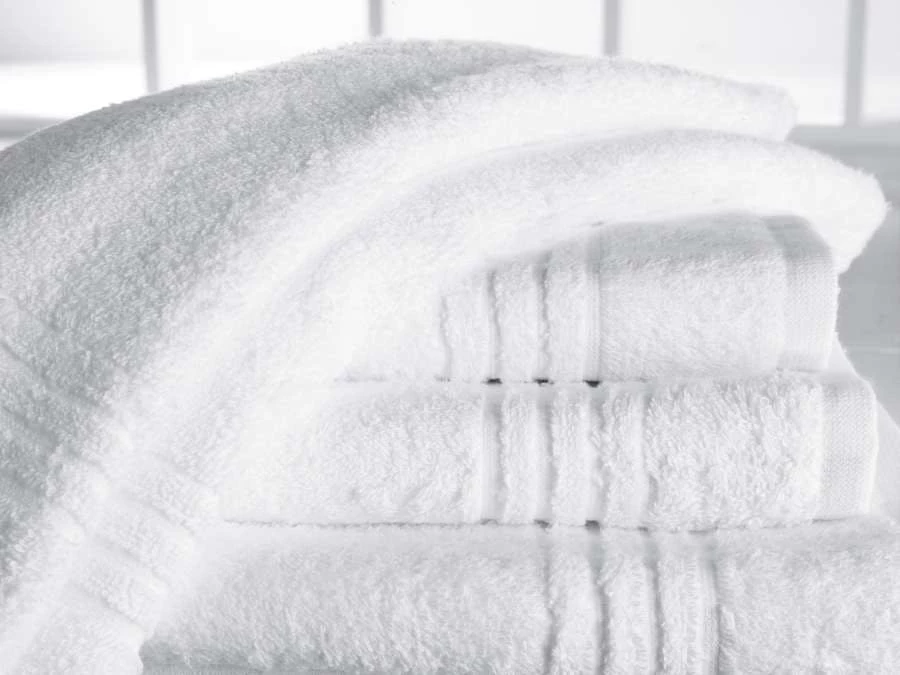 Das weiße Handtuch der Serie Ambassador (500 gr/m²) ist koch-und chlorecht, besteht aus 100% Baumwolle, hat eine Größe von 50×100 cm und ist bis 95° C waschbar.