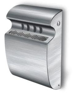 Wandascher, Höhe x Breite x Tiefe 320 x 240 x 100 mm, aus Stahl, Aschereinsatz Inhalt 3 l, mit Schutzdach, verschließbar mit Dreikantschloss, einfache Entleerung über innenliegenden Handgriff, Lieferung inklusive Montagematerial.