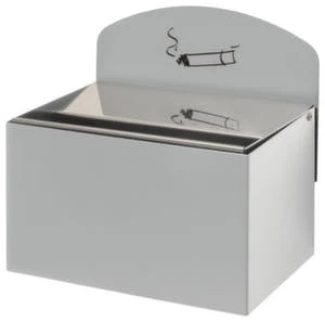 Wandascher, Höhe x Breite x Tiefe 87 x 140 x 98 mm, aus Stahl, Korpus verzinkt mit Pulverbeschichtung in silber, Aschereinsatz aus Stahl, Innenbehälter herausnehmbar, ohne Schutzdach, Lieferung inklusive Montagematerial und Piktogramm-Aufkleber.