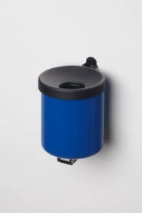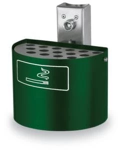 Wandascher, Höhe x Durchmesser 150 x 200 mm, aus Stahl, Korpus mit Pulverbeschichtung in moosgrün, halbrunde Form, mit Lochblech-Einsatz, Aschereinsatz Inhalt 2 l, ohne Schutzdach, verschließbar mit Dreikantschloss, Lieferung inklusive Piktogramm-Aufkleber.